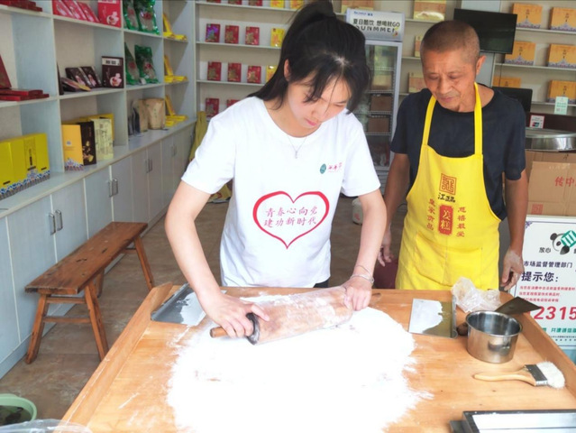 图为夏乡之源实践团成员实践姜糕的筛制工艺的制作过程薛宇泽摄