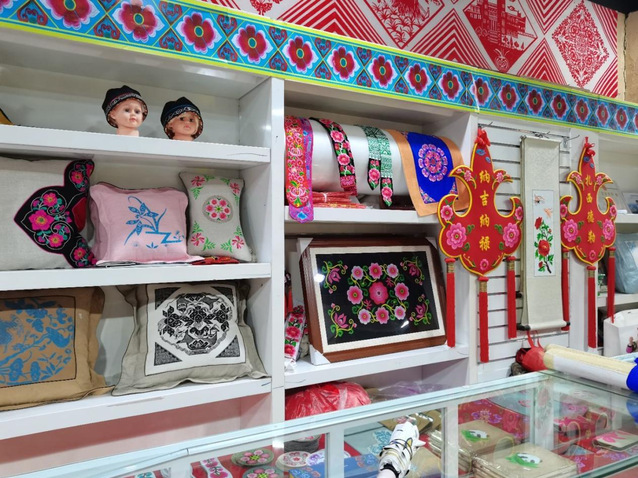 图为羌绣制作馆里部分羌绣产品中国青年网通讯员徐洪波摄(经李老师授权使用)