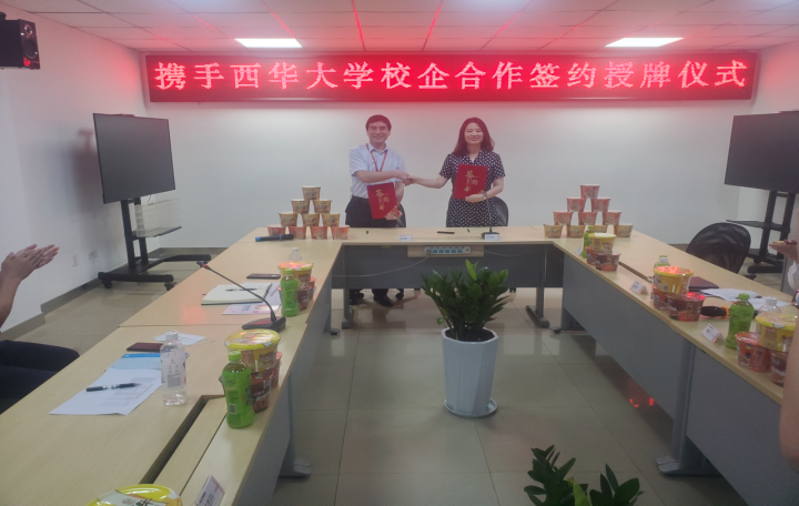 张均富院长与成都顶益食品有限公司公签订了校企合作协议,李强副书记向公司授予了“优质人才培养基地”牌匾。