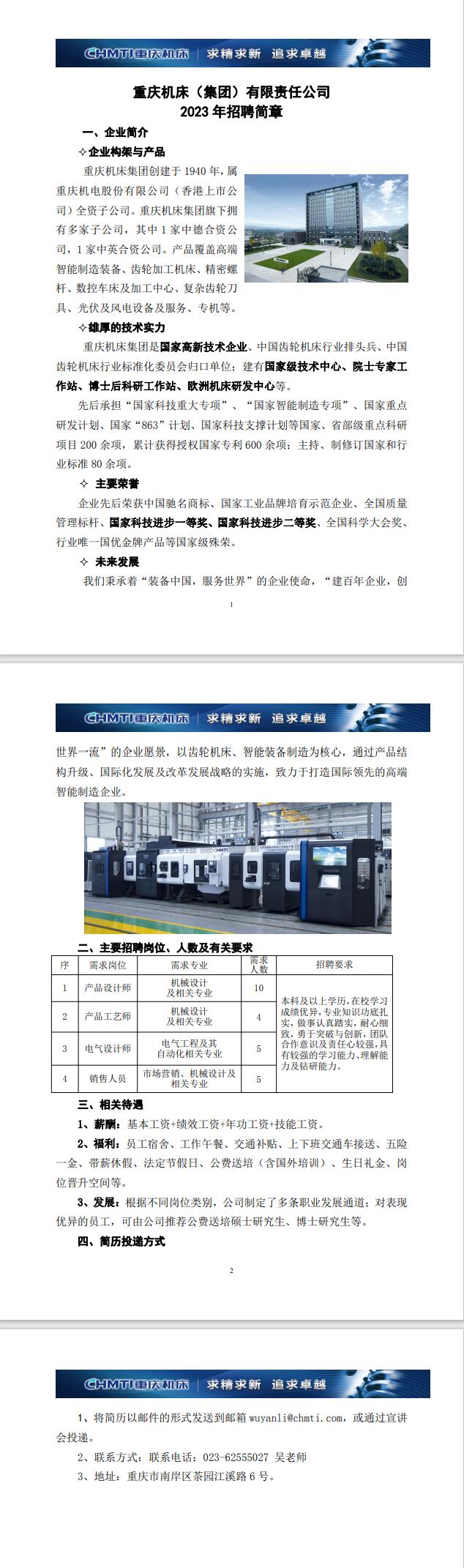 【现场招聘】重庆机床集团、内江金鸿曲轴有限公司来学院开专场招聘会