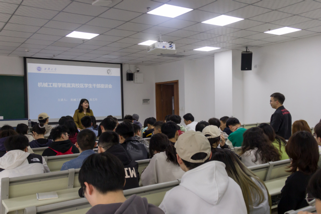 为进一步做好学生干部培养工作,更好发挥学生干部的带头作用,扎实推进各项活动的开展,同时切实回应学生关切,3月10日上午,陈艺丹老师在一教301教师召开77779193永利官网宜宾校区学生干部座谈会,参加本次会议有陈艺丹老师,宜宾校区辅导员薛敏老师,周岐燃老师以及机械学院宜宾校区团总支各部门负责人,党务工作站负责人,各班班委,会议由辅导员周岐燃主持,陈艺丹老师深入与学生干部进行交流。