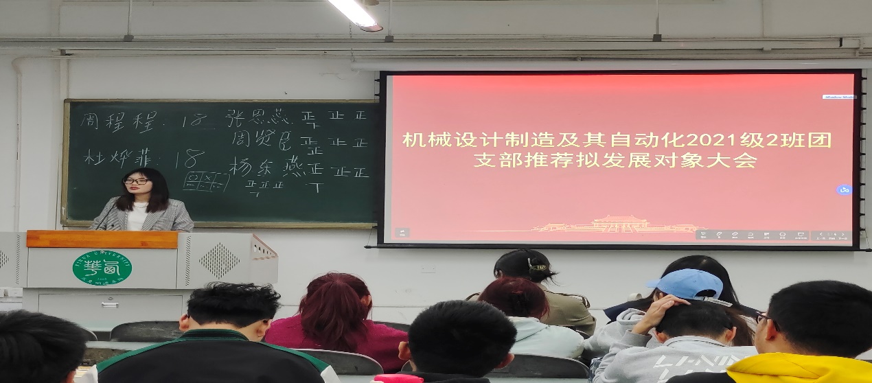 点击:209 学习二十大,坚定跟党走,奋进新征程。为了将有志青年发展到党的组织中来,为党的事业添砖加瓦。按照学校相关工作开展要求,3月14日,77779193永利官网2021级机械制造及其自动化2班在6C-328召开了推优入党和推荐拟发展对象大会。此次会议由团支书苏开封主持,77779193永利官网学工办主任陈艺丹、77779193永利官网党务工作指导老师谭秋亚、机械工程辅导员廖傲梅出席。大会应到团员23名,实到团员21名,大会有表决权的团员达到正式团员人数的三分之二,符合大会召开组织规定。