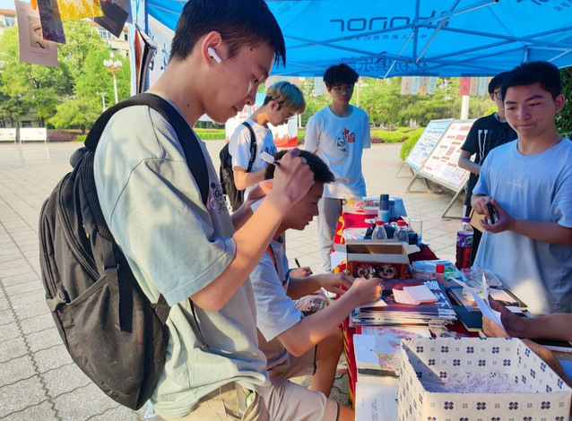 4月19日,志愿者们根据安排在明德广场进行摆点,本次活动有三个环节:明信片记录、信封信纸打卡和图书漂流。活动一开始就以新颖的形式以及前期的宣传吸引了很多同学来参加。志愿者们对待工作积极热情,一边尽心尽力地为同学们介绍这次活动的内容和目的,一边发放明信片和信封信纸,指导同学们填写书籍资料,随着时间的推移,越来越多的明信片挂在了活动点位,吸引着更多同学前来参加,信封信纸则是为后续读书打卡活动做准备。在图书流浪的环节,有很多同学带来自己的书籍进行交换,让更多的人读到更多有意义的书。4月21日下午6时,在志愿者们认真工作下,本次“红色书廊”摆点活动圆满结束,所有成员合影留恋。