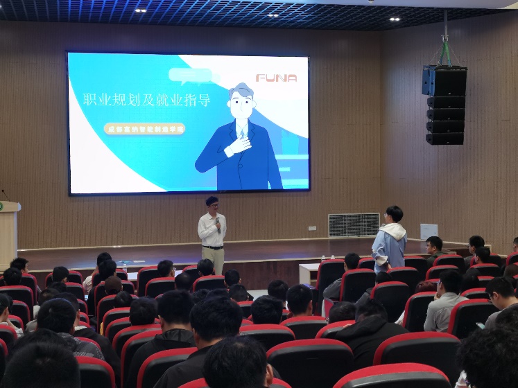 此次讲座邀请了成都富纳汇科技有限公司黄维副总经理,为毕业生进行职业规划及就业指导。黄经理亲切的和同学们进行交流,从就业形势的分析,行业环境分析,经济环境的影响几个方面,让学生能够对自己目前的就业状态有清醒的认识,希望同学们能够结合实际,将自己的就业期望值与现在的能力所匹配。他祝愿让同学们能够从众多面试者中脱颖而出,找到自己心仪的工作,并以昂扬的青春风貌,将在校所学运用实践到工作中,实现自身梦想。