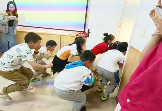 小朋友们进行火灾低姿态逃生演练