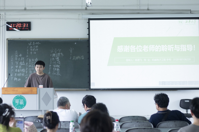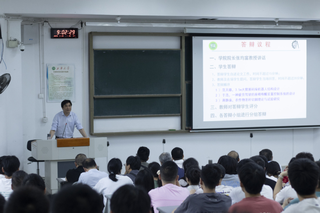 首先,由主持人宋敏莉介绍了本次答辩的大概流程。随后学院院长张均富讲话,强调了毕业设计对同学们的重要性,希望同学们能够将自己4年的学习成果展现出来,也希望答辩指导老师能够严格把关,提出切实的建议。紧接着,三位优秀毕业设计的同学分别上台进行答辩。答辩过程中,三位同学对分别自己的毕业设计作品进行原理介绍和分析,在逐一回答老师及同学提出的问题后,老师根据同学的回答和综合考量指出了同学们毕业设计的缺陷和不足,同时为改进毕业设计提供了专业指导意见,答辩结束后,同学们纷纷表示会认真听取老师的建议,并对自己的毕业设计做出改进。