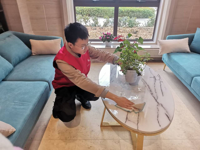 志愿者认真打扫