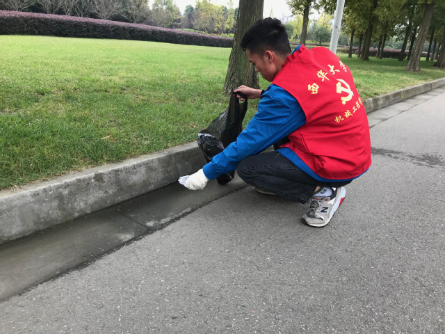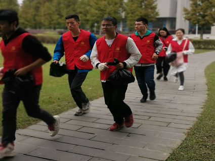 活动开始后,学生党员们统一着装,佩戴白手套,手提环保袋,从图书馆门口出发,环绕校园慢跑一周,途经马路、草坪、绿化带和广场等区域,拾捡不易发现和清理的白色垃圾,并放进环保袋。在活动终点,志愿者们对捡到的垃圾进行了统一处理。