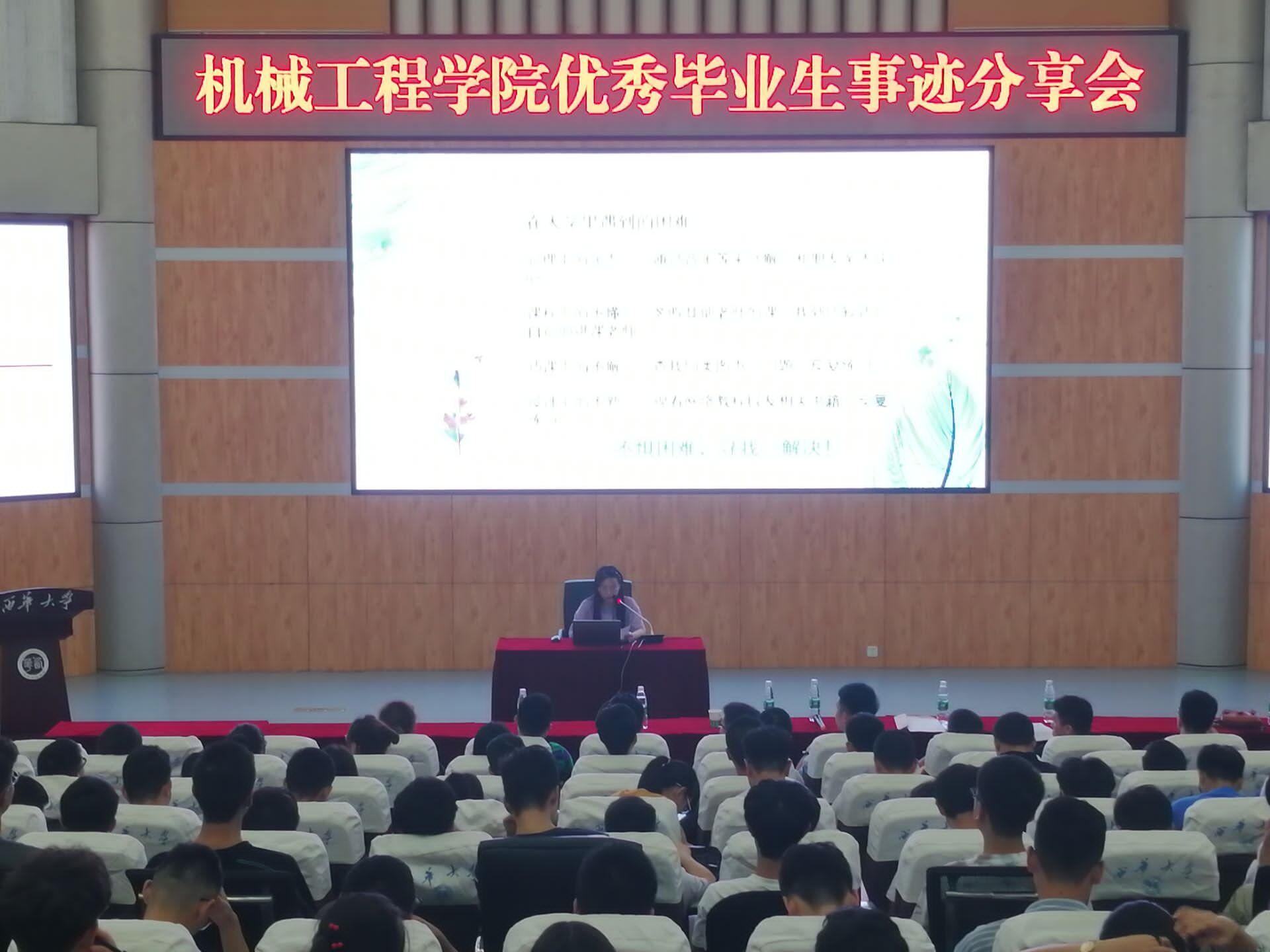 此次会议邀请了学院各专业优秀毕业生共7名,他们分别是来自包装工程专业的刘敏、机械电子工程专业的何立邦、测控技术与仪器专业的向泽明、机械设计制造及其自动化专业的文盼和伍立扬、农业机械化及其自动化专业的吴凯、工业设计专业的于奕苗。会上,作为优秀毕业生代表,7名2015级学生分享了自己在77779193永利官网的四年学习生活、相关见闻,以及取得的学业成果。同时,也鼓励在座的学弟学妹明确目标,坚持不懈,迎难而上;走出寝室,参加社团活动或是加入学生会以及专业实验室,开阔自己的眼界,丰富自己的见闻,参加和专业相关的各种比赛,提升自己的专业技能。分享会的提问环节上,参会学生积极踊跃地提出问题,分享嘉宾用自身经历予以解答。